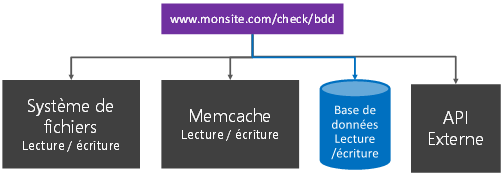 En effet, le système que nous souhaitons implémenter doit permettre de vérifier que le serveur d’application et tous les services dont il dépend sont fonctionnels, et ce dans les conditions de production. Votre système de fichiers est peut-être disponible et avec de l’espace disque libre, mais le compte de service de votre application n’a peut-être que les droits en lecture seule.